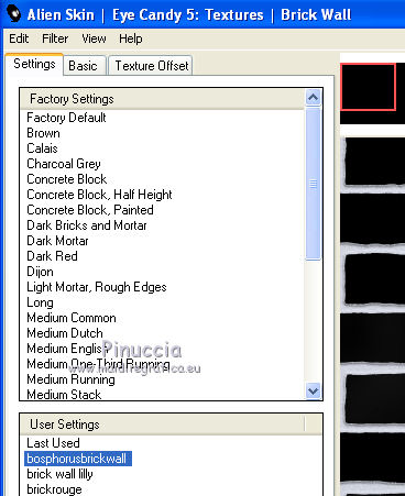 Effetti>Plugins>Alien Eye Candy Textures - Brick Wall,