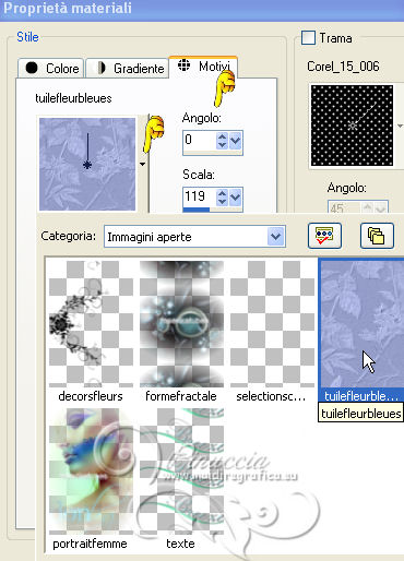 Passa il colore di sfondo a Motivi, apri il menu dei motivi