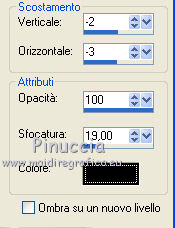 Effetti>Effetti 3D>Sfalsa ombra, con i seguenti settaggi.