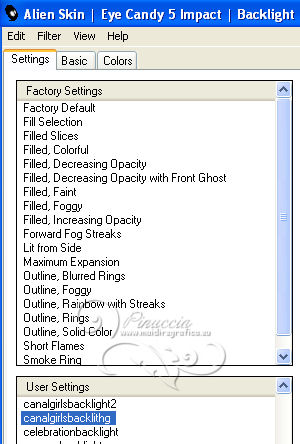 Effetti>Plugins>Alien Skin Eye Candy 5 Impact - Backlight.