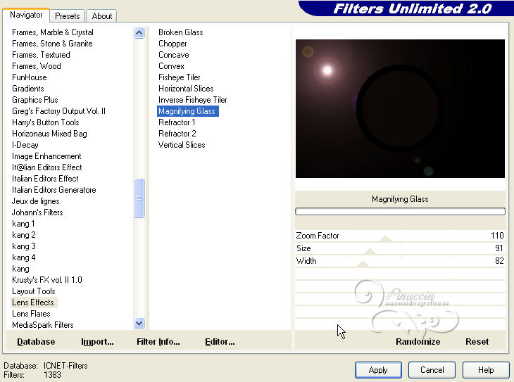 Effetti>Plugins>Filters Unlimited 2.0 - Lens Effects - Magnifying Glass.