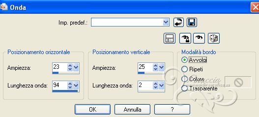 Effetti>Effetti di distorsione>Onda, con i settaggi precedenti.