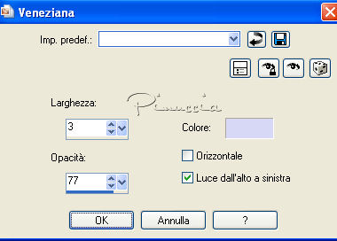 Effetti>Effetti di trama>Veneziana, con il colore #d6d8f5.