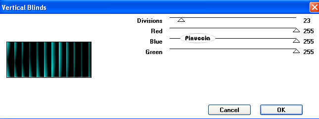Effetti>Plugins>Graphics Plus - Vertical Blinds, con i settaggi standard.