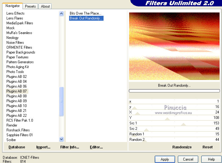 Effetti>Plugins>Filters Unlimited 2.0 - Plugins AB07 - Break out randomly, con i settaggi standard.