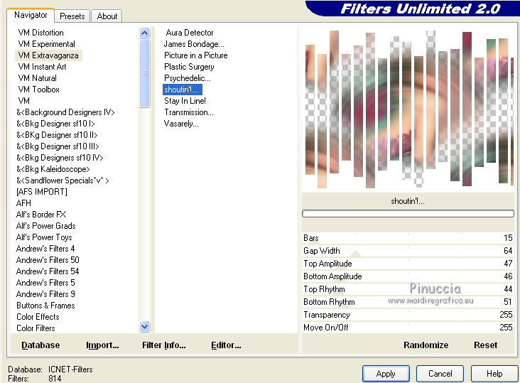 Questa è la schermata se usi il filtro in Filters Unlimited.