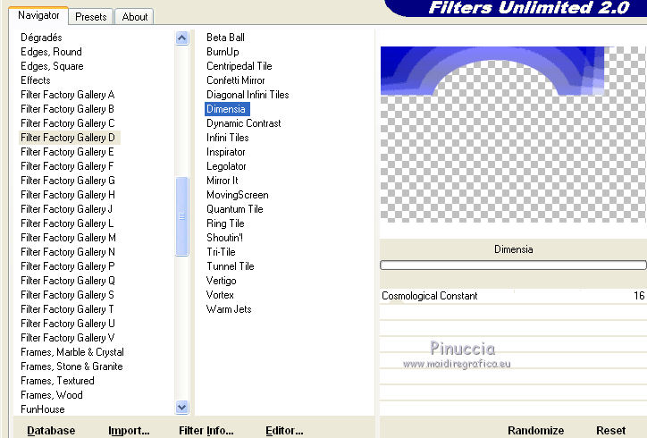 Effetti>Plugins>Filters Unlimited - Filter Factory Gallery D - Dimensia, con i settaggi standard.