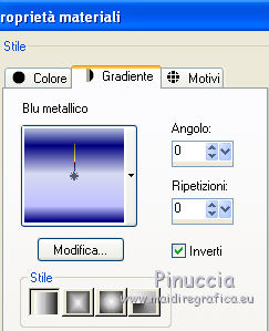 Passa il colore di primo piano a Gradiente e seleziona il gradiente Blue metallico (standard in PSP), con i seguenti settaggi.