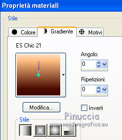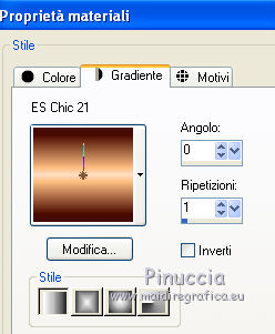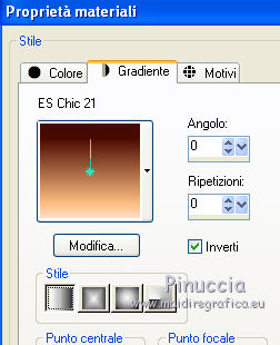 1. Passa il colore di primo piano a Gradiente, e seleziona il gradiente ES Chic21, con i seguenti settaggi (la parte chiara in basso).
