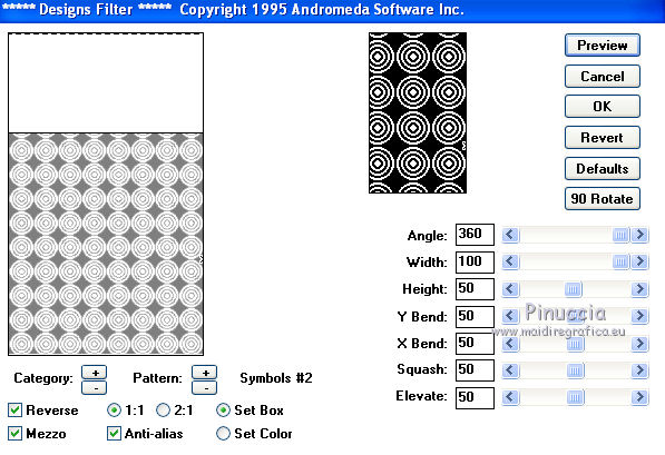 Passa il colore di sfondo a Motivi; cerca l'immagine nella lista dei motivi e imposta i seguenti settaggi.