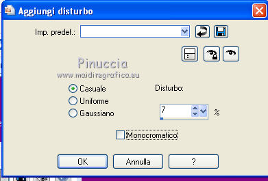 Regola>Aggiungi/Rimuovi disturbo>Aggiungi disturbo, con i settaggi precedenti.