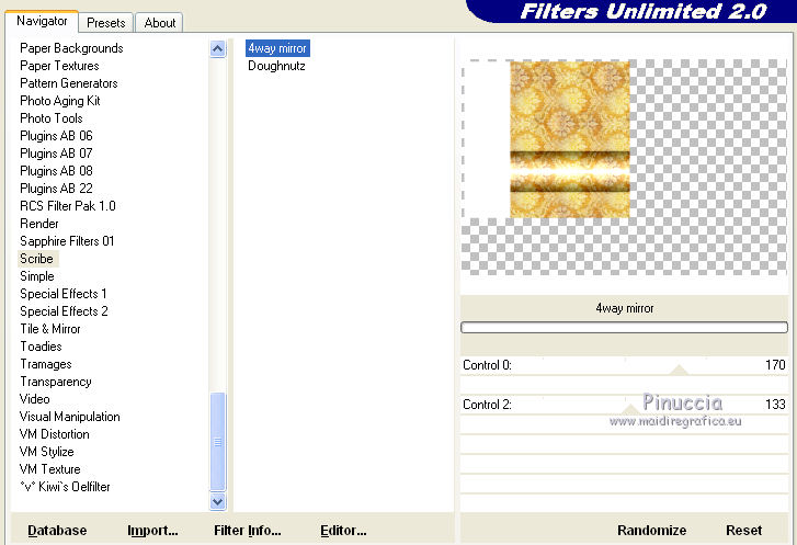 Effetti>Plugins>Filters Unlimited 2.0 - Scribe - 3 way Mirror.