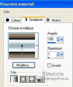 1. Passa il colore di primo piano a Gradiente e seleziona il gradiente Chrome metallique, con i seguenti settaggi.