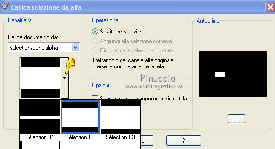 Apri "sélectionscanalalfa" e minimizzala. L'immagine non è vuota, ma contiene le selezioni salvate sul canale alfa. Con il file minimizzato, le selezioni saranno disponibili quando ti serviranno.