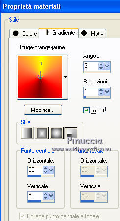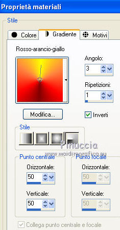 Passa il colore di primo piano a Gradiente e seleziona il gradiente Rosso-arancio-giallo con i seguenti settaggi.