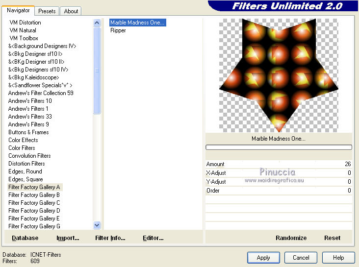 Effetti>Plugins>Filters Factory Gallery A - Marble Madness One con i settaggi standard.