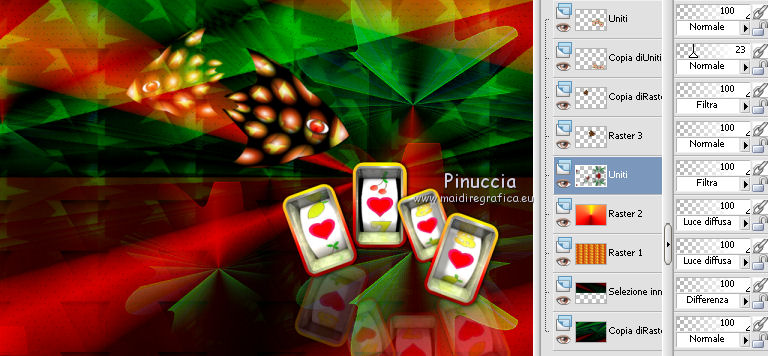 A questo punto, per il mio esempio ho cambiato la modalità di miscelatura del livello Uniti in Filtra.