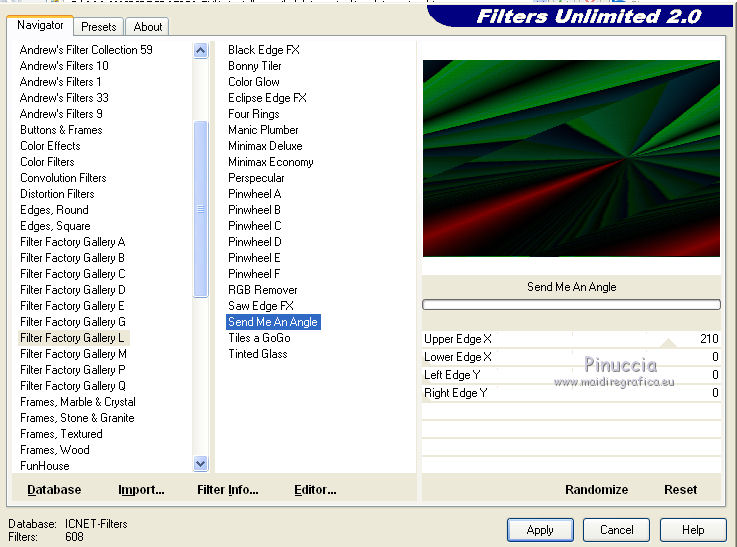 Effeetti>Plugins>Filters Unlimited - Factory Gallery L - Send me an angle, con i settaggi standard.