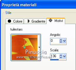 Passa il colore di sfondo a Motivi e seleziona il motivo Tuilestars con i seguenti settaggi.
