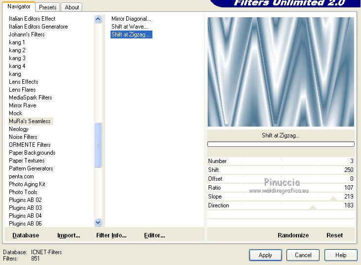Effetti>Plugins>Filters Unlimited 2.0 - Mura's Seamless - Shift at Zigzag.