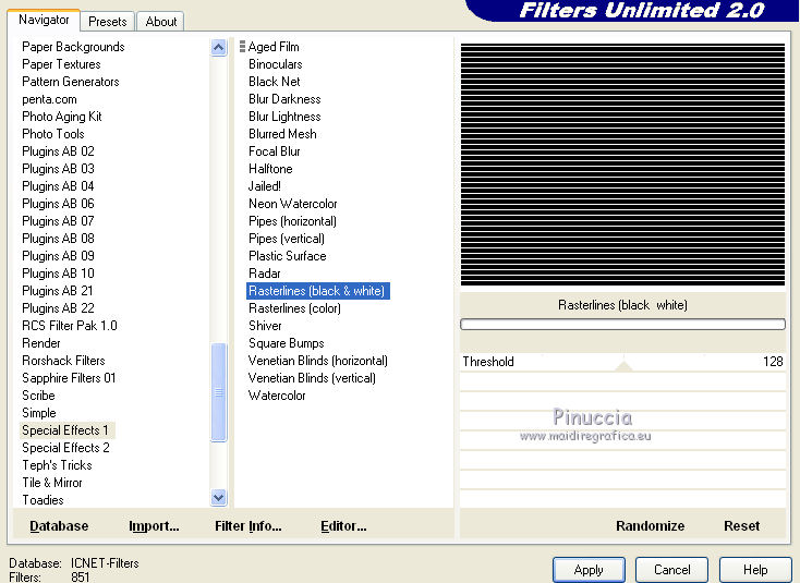 Effetti>Plugins>Filters Unlimited 2.0 - Special Effects 1 - Rasterlines (blackandwhite).