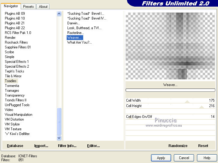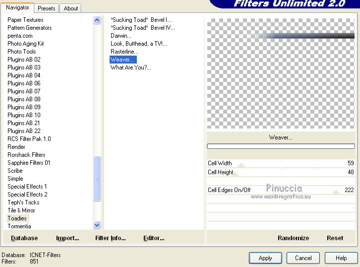 Effetti>Plugins>Filters Unlimited 2.0 - Toadies - Weaver.