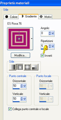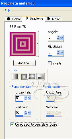 Passa il colore di primo piano a Gradiente, e seleziona il gradiente ES Rosa 76, stile Rettangolare.