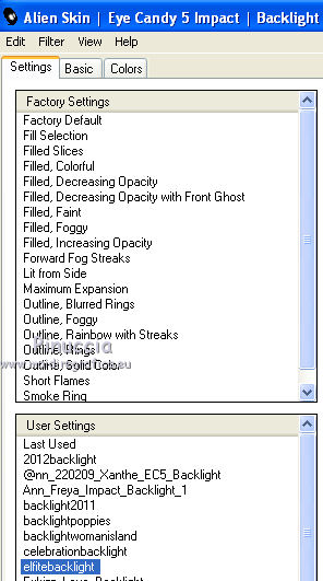 Effetti>Plugins>Alien Skin Eye Candy 5 Impact - Backlight.