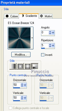 Passa il colore di primo piano a Gradiente, e seleziona il gradiente ES Ocean Breeze 124, con i seguenti settaggi.
