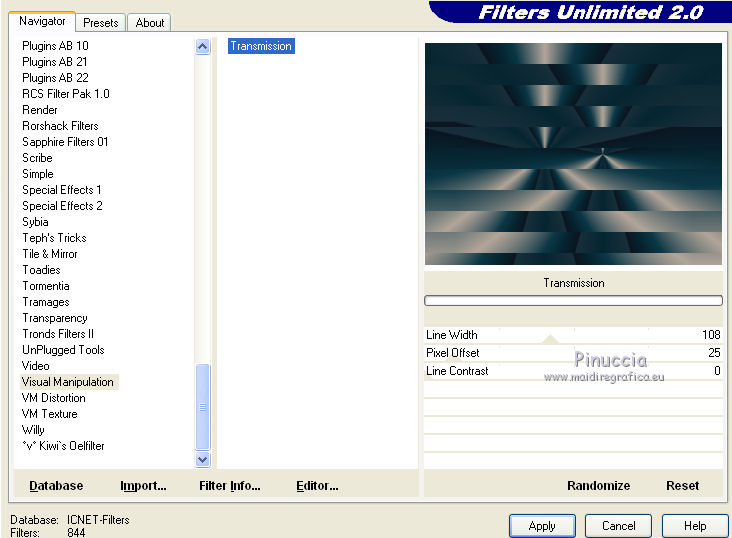 Effetti>Plugins>Filters Unlimited 2.0 - Visual manipulations - Transmission.