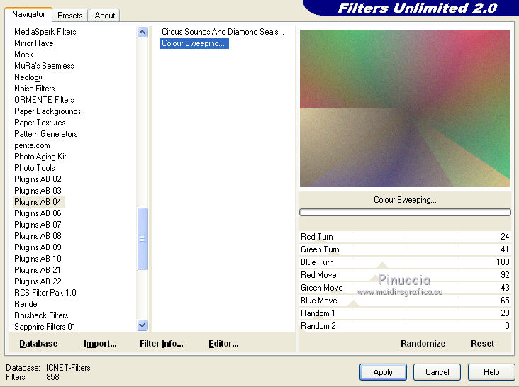 Effetti>Plugins>Filters Unlimited 2.0 - Plugins AB 04 - Colour Sweaping, con i settaggi standard.