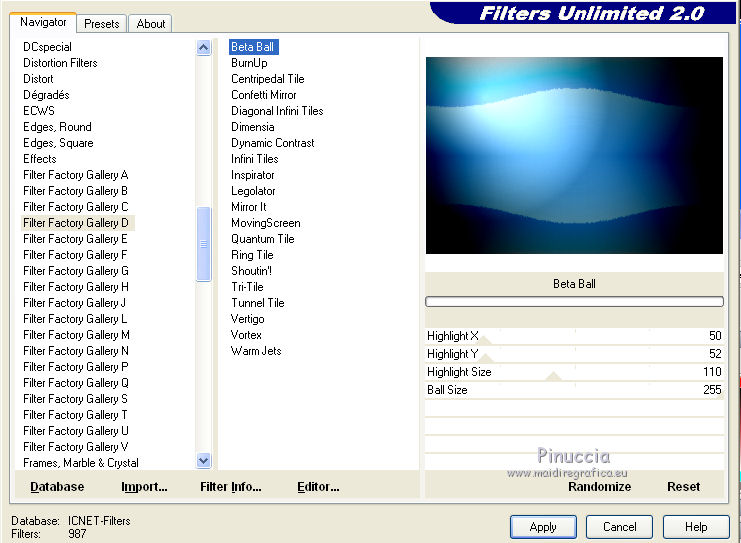Effetti>Plugins>Filters Unlimited - Filters Factory Gallery D - Beta Ball con i settaggi standard.