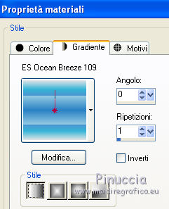 Passa il colore di primo piano a Gradiente e seleziona il gradiente ES Ocean Breeze 109, stile Lineare, con i seguenti settaggi.
