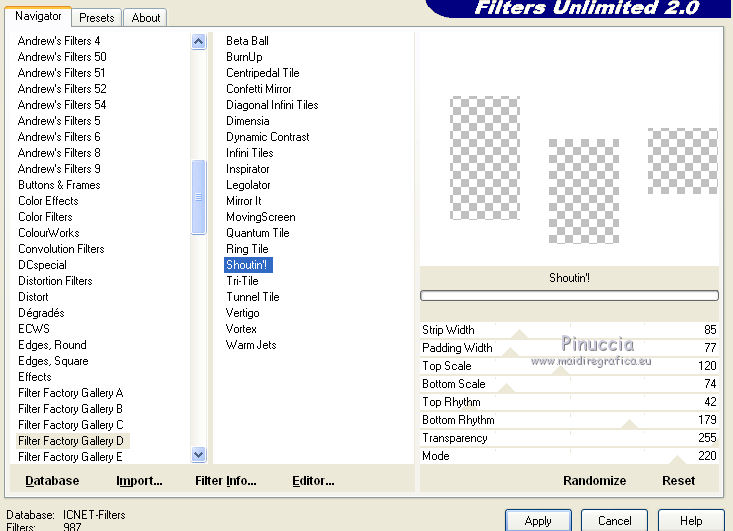 Effetti>Plugins>Filters Unlimited - Filter Factory Gallery D - Shoutin con i settaggi standard.