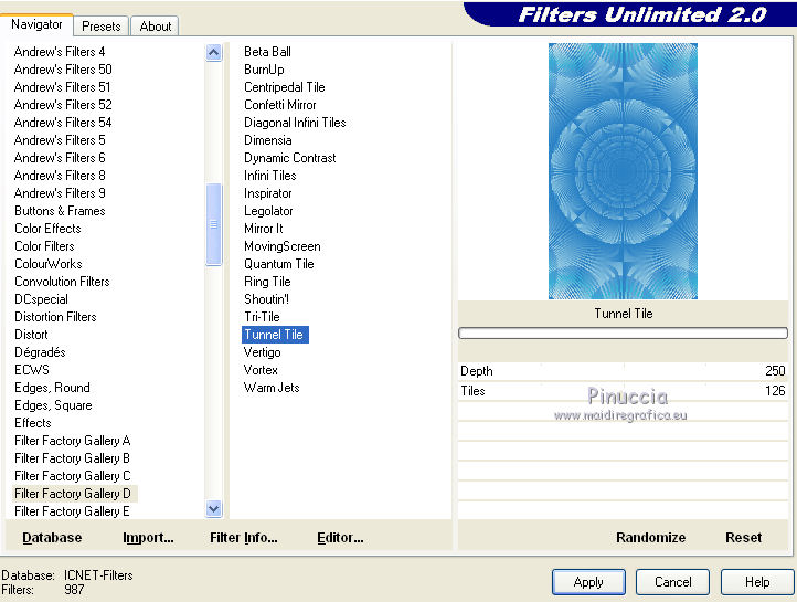 Effetti>Plugins>Filters Unlimited - Filter Factory Gallery D - Tunnel Tile.