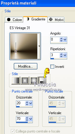 1. Passa il colore di primo piano a Gradiente, e seleziona il gradiente ES Vintage 31, con i seguenti settaggi: