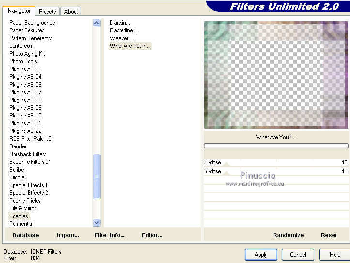 I filtri Simple, VM Natural (come tutti quelli della serie VM) e Toadies si possono usare sia da soli che importandoli in Filters Unlimited.