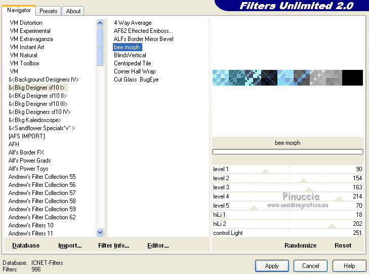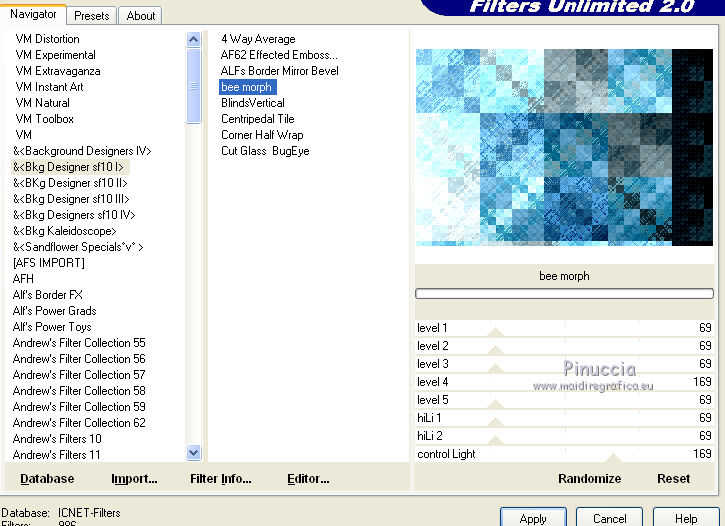Effetti>Plugins>Filters Unlimited - Bkg Designersf10I - Bee Morph, con i settaggi standard.