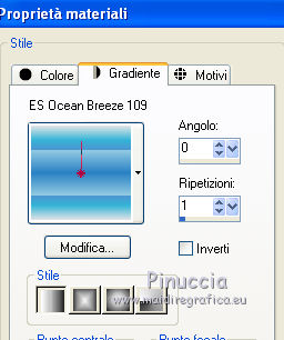 Passa il colore di primo piano a Gradiente e seleziona il gradiente ES Ocean Breeze 109, stile Lineare, con i seguenti settaggi.