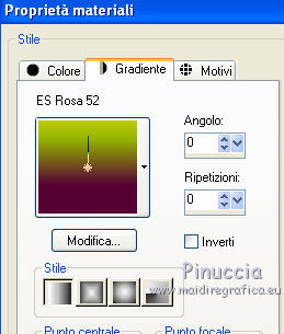 Passa il colore di primo piano a Gradiente e seleziona il gradiente ES Rosa52, stile sprazzo di luce.