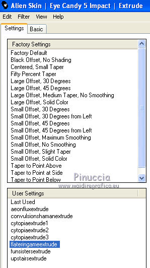 Effetti>Plugins>Alien Skin Eye Candy 5 Impact - Extrude.