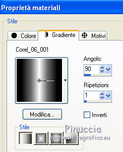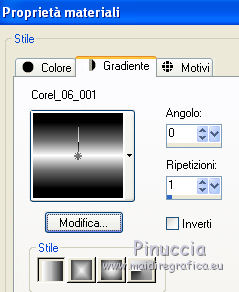 Passa il colore di primo piano a Gradiente e seleziona il gradiente Corel 06_001, con i seguenti settaggi