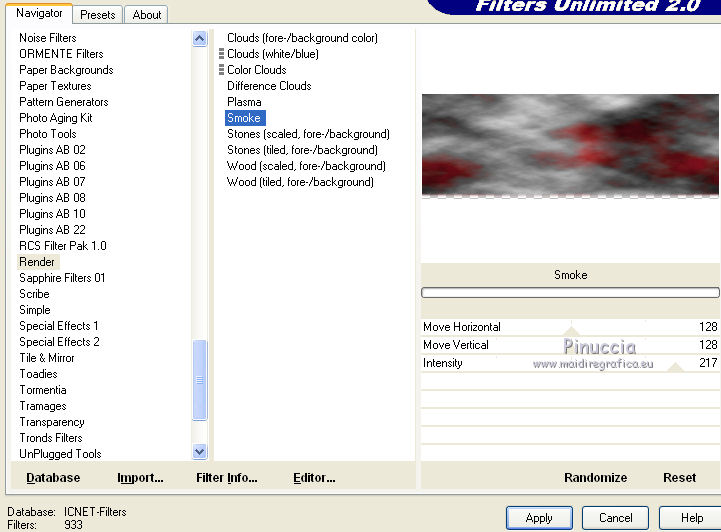 Effetti>Plugins>Filters Unlimited 2.0 - Render - Smoke con i settaggi standard.