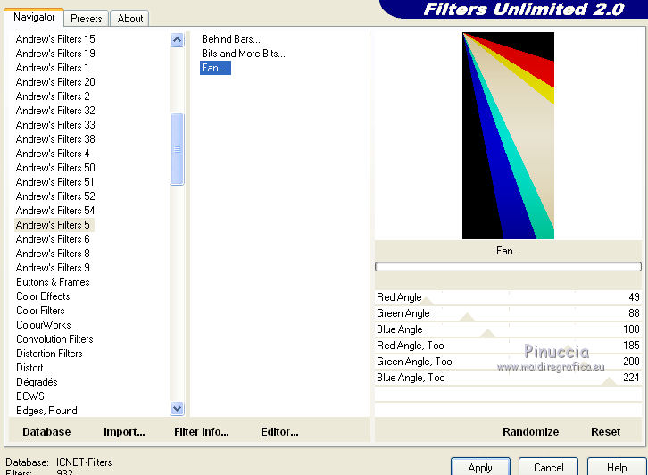 Effetti>Plugins>Filters Unlimited - Andrew's Filters 5 - Fan, con i settaggi standard.