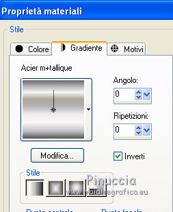 1. Passa il colore di primo piano a Gradiente, e seleziona il gradiente Acier métallique, con i seguenti settaggi.