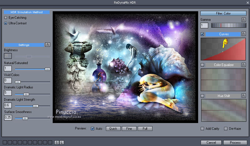 Seleziona Ultra-Contrast e - a destra - con il mouse abbassa il livello nella casella Curves.