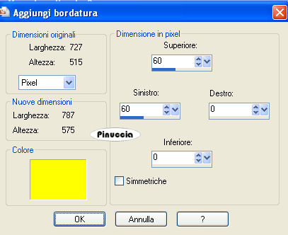 Immagine>Aggiungi bordatura, simmetriche non selezionato, con un colore qualsiasi purchè contrastante con quelli dell'immagine.