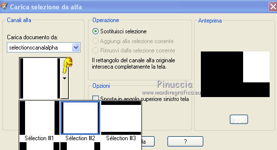 Apri il file "sélectionscanalalfa" in PSP e minimizzalo. L'immagine non è vuota, ma contiene le selezioni salvate sul canale alfa. Con il file minimizzato, le selezioni saranno disponibili quando ti serviranno.