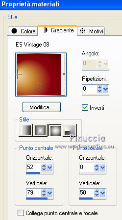 1. Passa il colore di primo piano a Gradiente, e seleziona il gradiente ES Vintage 08, con i seguenti settaggi.
