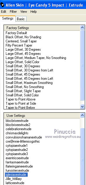 Effetti>Plugins>Alien Skin Eye Candy 5 Impact - Extrude,